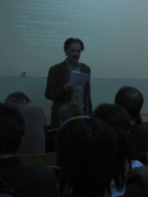 Wszyscy profesorowie mówili o wiele dłużej niż było to przez nas zaplanowane. Ich "gawędy" były bardzo interesujące. Aż żal, że nie było to jakoś nagrane. Jeśli nie przez kamerę to przynajmniej warto było postawić dyktafon. Niestety, nie pomyślałem o tym. Tekst mojego wystapienia jest tu. Dziś pewnie bardzo bym go zmienił - to był mój debiut w takiej roli. Byłem bardzo przejęty, stąd i dużo mi umknęło z tych wykładów, szkoda. |