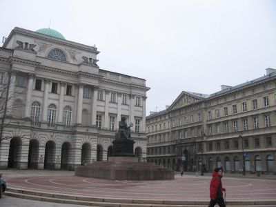 | Uniwersytet Warszawski, trudno o bardziej nobilitujące miejsce. Przed gmachem pomnik Kopernika. Nawiasem mówiąc już nie raz porównywałem Dersu do niego - stąd zresztą tytuł mojej książki "O obrotach sfer człowieczych". | ![]() |